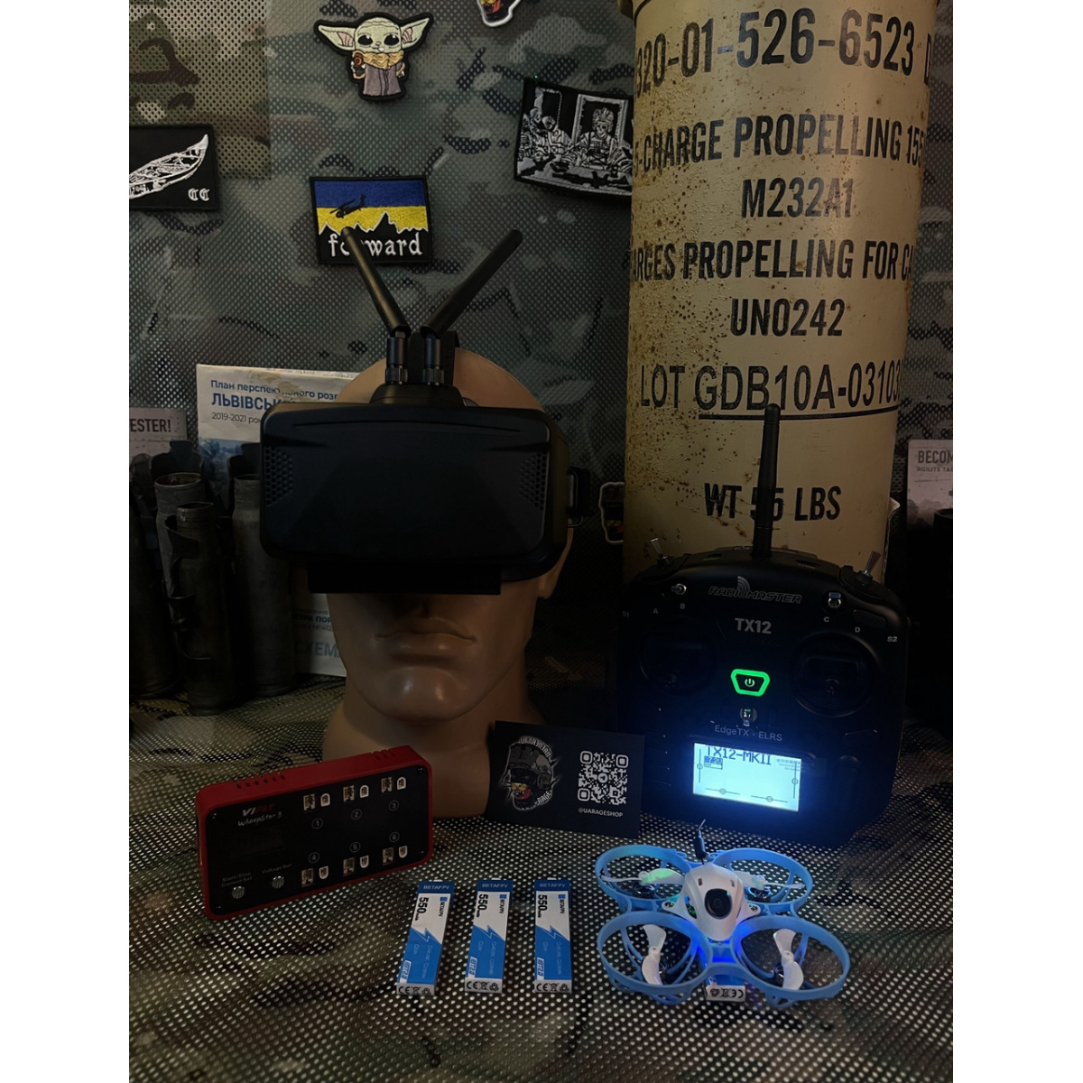 Апаратура: Ми обрали дуже якісну і надійну апаратуру - пульт RADIOMASTER TX12 ELRS, який зарекомендував себе як на фронті, так і в цивільних. Компактніший дизайн порівняно з старшими братами такими як BOXER та TX 16. Міцний та закритий корпус якому не страшний пил та бруд. Ідеальне рішення для тих кому Radiomaster Pocket буде замалий.